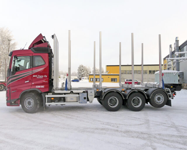 KES-Trans Oy Volvo – Helmikuu 2026 Omistaja KES-Trans Oy Kuormatila 6930 mm Akselimäärä 4 Akseliväli 4300 mm Nosturiteline Irrotettava nosturiteline Pankko ALU 75 Muuta Ulkopuolinen tuppi nosturitelineelle, säätötilavuushydrauliikka, Parker eVP1-130 pumppu jossa sähkötoiminen säädin, vesiputkisto nosturiin, ilmakiristin, kippaava sivualleajosuoja, irrotettavat lokasuojat, Icefighter hiekottimet: 90 litraa