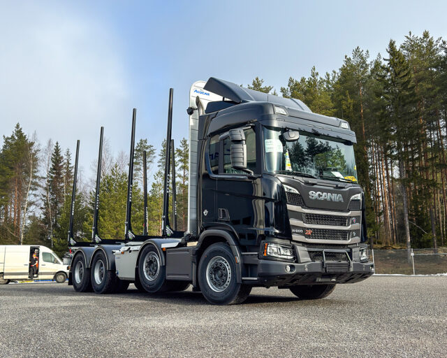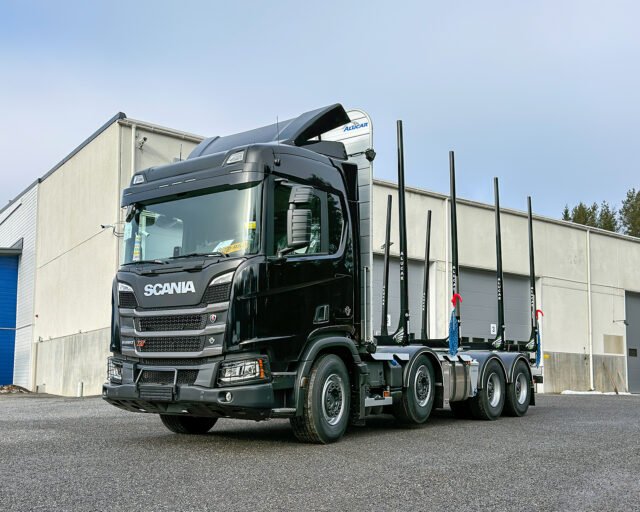 Metsä-Koskela Oy Scania – Maaliskuu 2026 Omistaja Metsä-Koskela Oy Kuormatila 6985 mm Akselimäärä 4 Akseliväli 4950 mm Nosturiteline Irrotettava nosturiteline Pankko Eagle 75i Muuta Sisäpuolinen tuppi nosturitelineelle, säätötilavuushydrauliikka, ilmakiristimet, irrotettavat lokasuojat, Icefighter hiekoittimet: 90 litraa