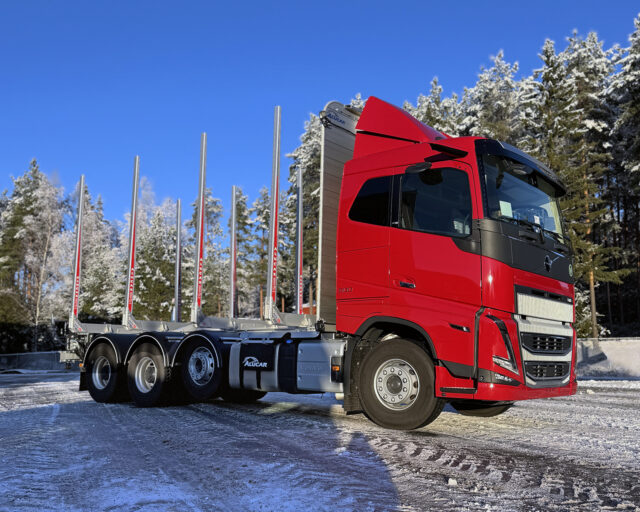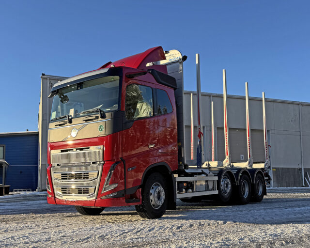 Metsäkone Pohjankivi Oy Volvo – Marraskuu 2025 Omistaja Metsäkone Pohjankivi Oy Kuormatila 6655 mm Akselimäärä 4 Akseliväli 4900 mm Nosturiteline Irrotettava nosturiteline Pankko ALU 75 Muuta Ohjaamosuoja LED-valoilla, sisäpuolinen tuppi nosturitelineelle, säätötilavuushydrauliikka, vesiputkisto nosturiin, ilmakiristimet, kippaava sivualleajosuoja, työkalulaatikko integroiduilla askelmilla, irrotettavat ja nousevat lokasuojat, Icefighter hiekottimet: 90 litraa
