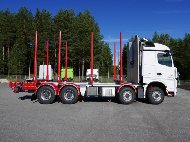Mikko Flyktman Oy Mercedes-Benz 2022-09 Omistaja Mikko Flyktman Oy Kuormatila 6710 mm Akselimäärä 4 Akseliväli 5150 mm Nosturiteline Irrotettava nosturiteline Pankko Eagle 75 Muuta Ohjaamosuoja kouratuella ja LED-valoilla - Headboard with grapplerack bag and LED-lights. Nousevat lokasuojat - Liftable mudguards. Säätötilavuushydrauliikka - LS-hydraulics. Sisäpuolinen tuppi - inside socket for the crane console. Icefighter.