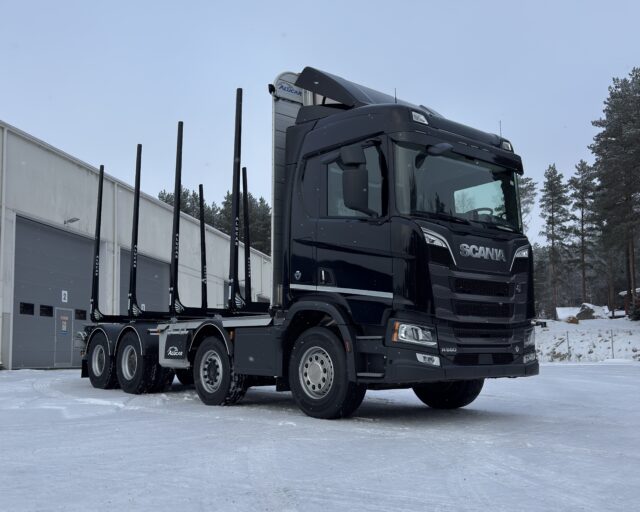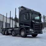 Rämän Kuljetus Oy Scania – Helmikuu 2026 Omistaja Rämän Kuljetus Oy Kuormatila 7030 mm Akselimäärä 4 Akseliväli 4950 mm Nosturiteline Irrotettava nosturiteline Pankko Eagle 75i Muuta Ohjaamosuoja kourakololla, sisäpuolinen tuppi nosturitelineelle, 1-piiri hydrauliikka, vesiputkisto nosturiin, mekaaniset kuormankiristimet, työkalulaatikko kääntyvillä askelmilla, irrotettavat lokasuojat