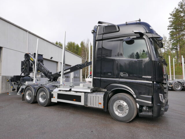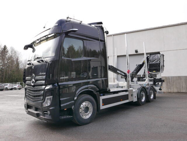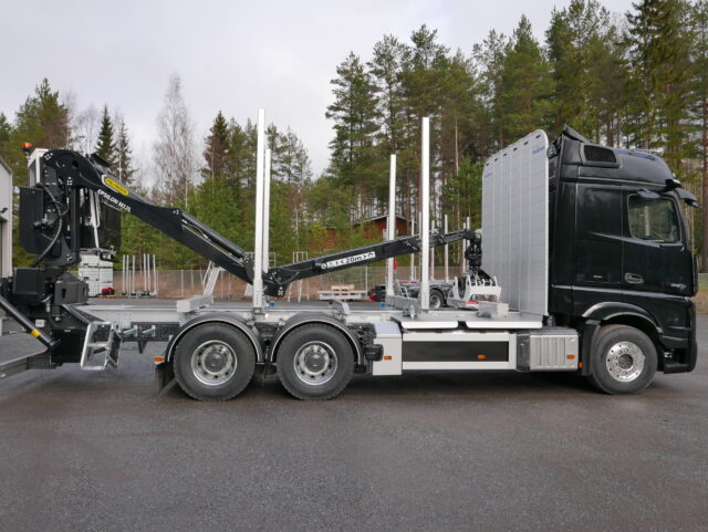 Biofrakt AS Mercedes-Benz Ägare Biofrakt AS Lastutrymme 6918 Antal axlar 3 Hjulbas 4600 Kranställning Fast kranställning Bankar ALU 95