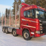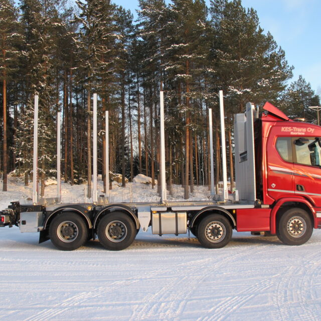 KES-Trans Oy Scania 2021 Ägare KES-Trans Oy Lastutrymme 7157 Antal axlar 4 Hjulbas 4950 Kranställning Löstagbar kranställning Bankar ALU 75