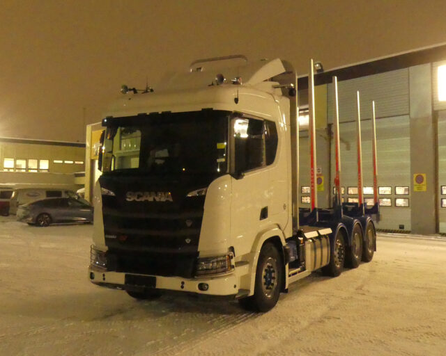 Annat Framstam med gripstöd och LED-lampor, LS-hydraulik, Parker eVP1-130 variabelpump med elektronisk regulator, pneumatiska lastspännare, löstagbara stänkskärmar