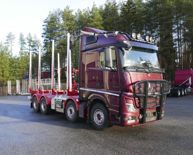 Annat Framstam med LED-lampor, invändig hylsa för kraninfästning, LS-hydraulik, pneumatiska lastspännare, verktygslåda med integrerad stege, lyftbara stänkskärmar, Icefighter sandare: 90 liter