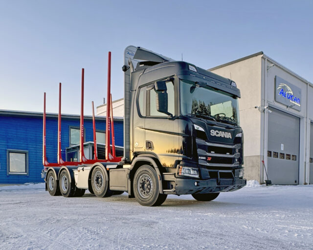 Metsä-Koskela Oy Scania – Januari 2026 Ägare Metsä-Koskela Oy Lastutrymme 6985 mm Antal axlar 4 Hjulbas 4950 mm Kranställning Löstagbar kranställning Bankar Eagle 75i Annat Invändig hylsa för kraninfästning, LS-hydraulik, pneumatiska lastspännare, Icefighter sandare: 90 liter