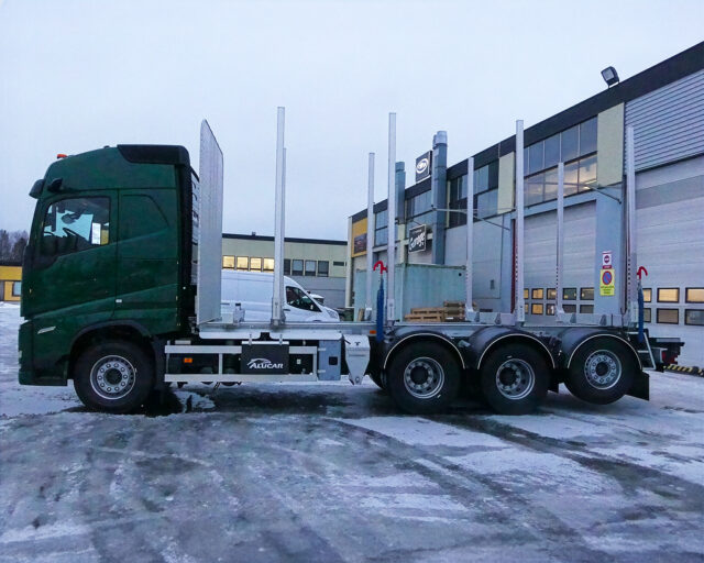 T. Katajala Oy Volvo – November 2025 Ägare T. Katajala Oy Lastutrymme 7080 mm Antal axlar 4 Hjulbas 4300 mm Kranställning Löstagbar kranställning Bankar ALU 75 Annat Utvändig hylsa för kraninfästning, LS-hydraulik, oljekylare, vattenledningar till kranhytt, pneumatiska lastspännare, tippbart sidounderkörningsskydd, löstagbara stänkskärmar, Icefighter sandare: 90 liter